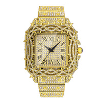 Хип-хоп, золотой бриллиант, новый дизайн, уникальный медный чехол для часов с индивидуальным логотипом, роскошные часы, квадратные кварцевые наручные часы для мужчин